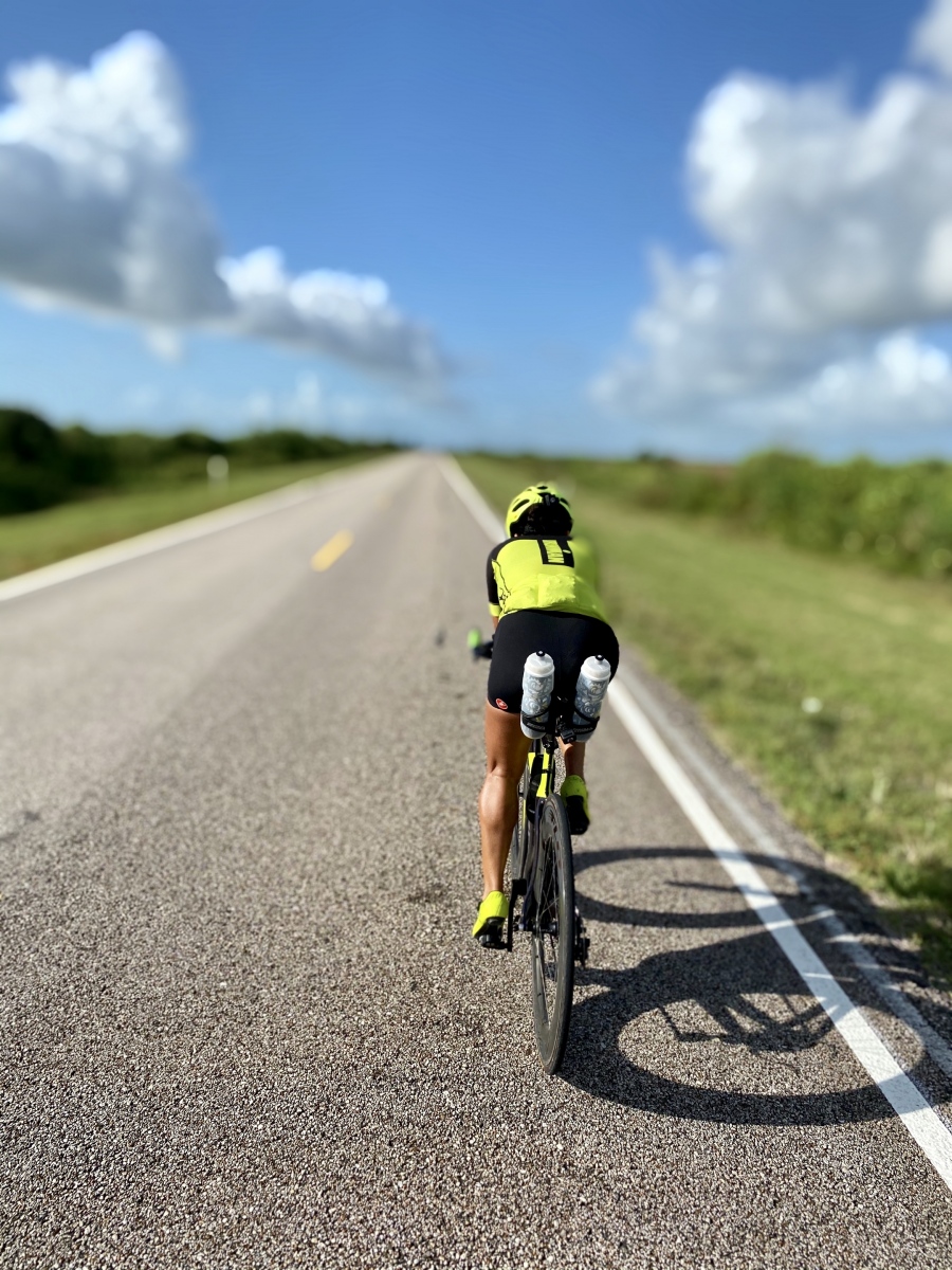 Yesterday was an absolute scorcher. The “feels like” temperature was as hot at 111° with 100% humidity. We’ve definitely entered the dog days of summer in Houston. However, despite the discomfort, my training must continue. The wisest way to train is to do it indoors. Nope. I’m not interested in doing that. Being outside is an important part of working out for me. I love the air, the smells, and the changes in scenery. When I’m training outside and I enter a moment of discomfort or prolonged suffering and want to quit, I often find a sense of peace and a connection to deeper energy that I use to keep pushing myself. I don’t feel those things on a treadmill or a bike trainer.