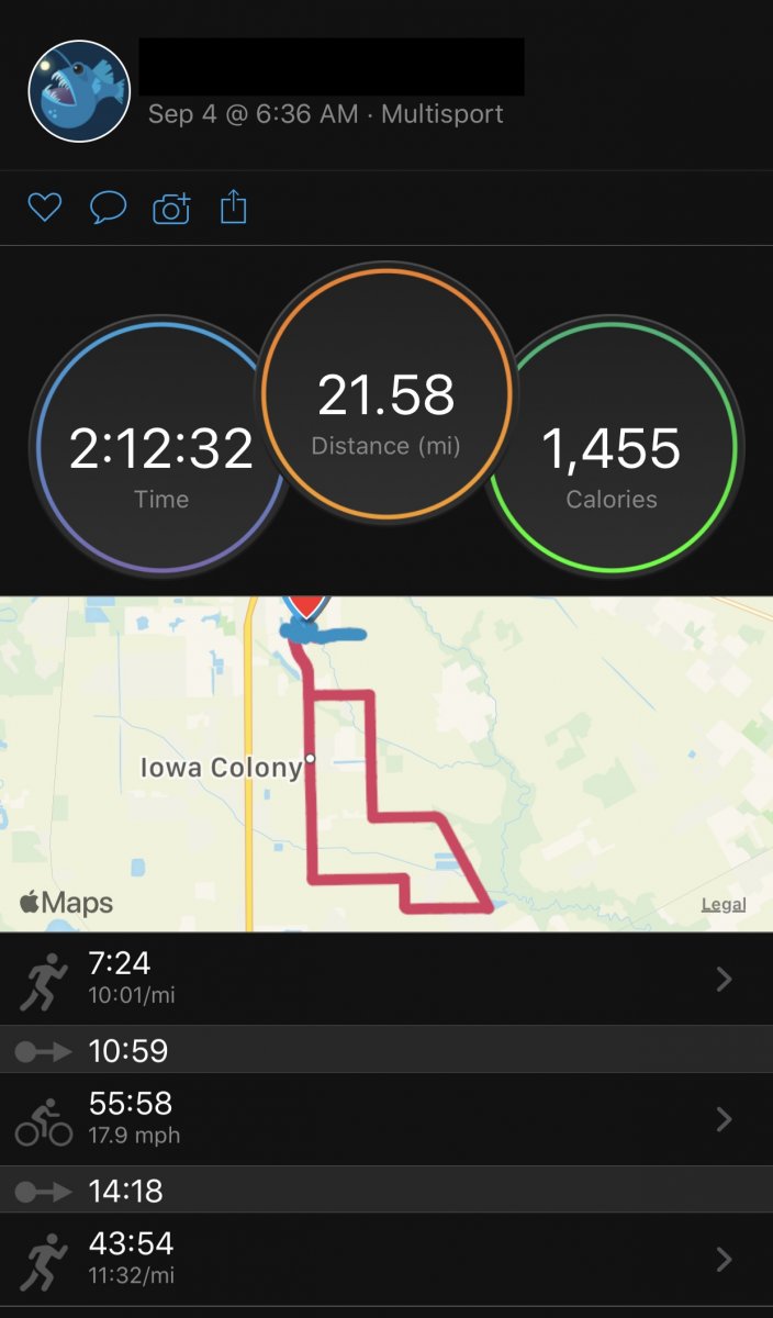 Since all of the Ironman races this year have been either canceled or postponed, the Ironman organization has organized a series of virtual races. They have occurred every weekend for the past 22 weeks. The lengths of the races vary from week to week. Before last week, I decided to stick with my training plan rather than do any of the virtual races. Not because I couldn’t fit any of them in, I simply wasn’t interested. I didn’t see the point, so I skipped each one until yesterday.